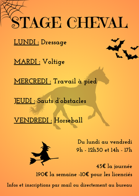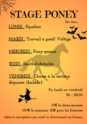 29 OCTOBRE et 1er NOVEMBRE - Cours déguisés au poney club